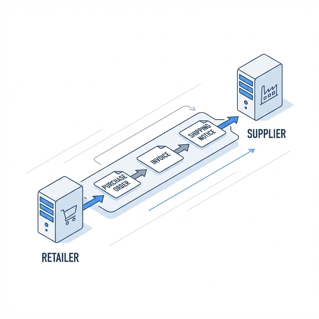A practical example: when Home Depot orders 500 units of your LED bulbs, their system generates a purchase order, translates it into a standard format (often ANSI X12), and transmits it to your system. Your system ingests it, creates the order, and returns an acknowledgment—no manual keying in the middle.